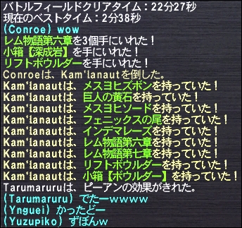 確か時間切れした土曜の2戦は狩が1人スシ食ってたぽいんだけど、そいえば食事とか指定してなかったね~って話にもなって、最後は食事も調整しました。