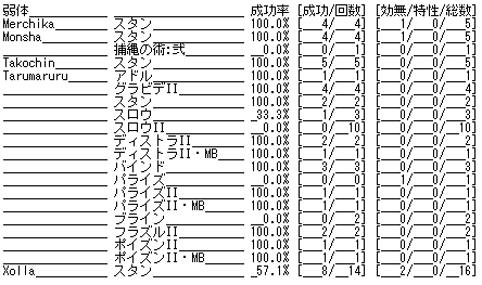 上記の弱体命中率を見ても分かる通り、風水の支援があれば忍のサポスタンでもそこそこ入るのが笑えるw