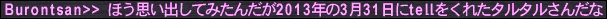 どうやって調べたのだか前回エンカウントした時の日付つきでtellして来てブハッてなった。